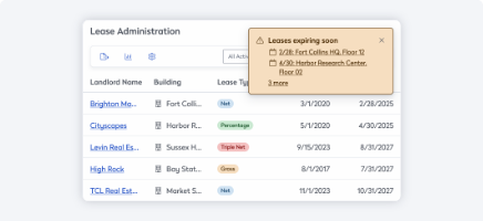 Centralize lease data, automate alerts, and analyze costs. Manage property contracts, renewals, and compliance with dashboards and interactive mapping tools.