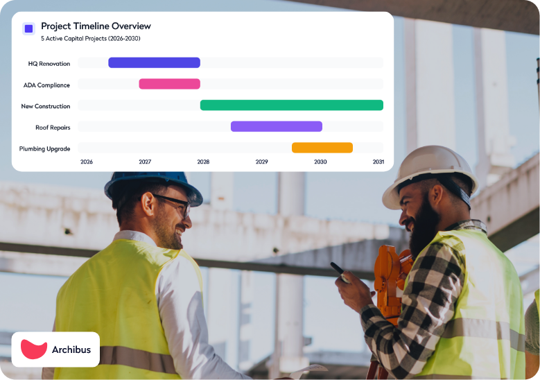 Archibus by Eptura brings together the tools needed to manage capital projects from start to finish. Each feature supports collaboration, transparency, and accountability, helping teams deliver successful projects.