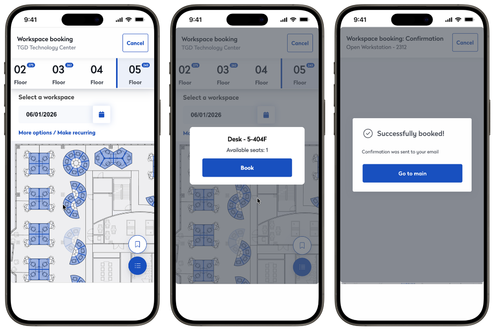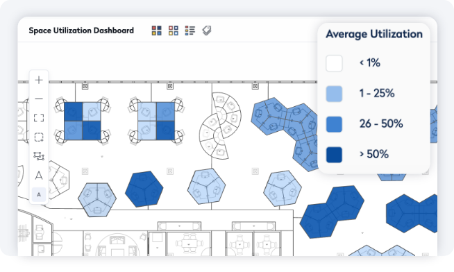 Track actual space usage with data from sensors, badge systems, and reservations. Gain accurate occupancy insights to optimize layouts, reduce wasted space, and support hybrid work strategies.