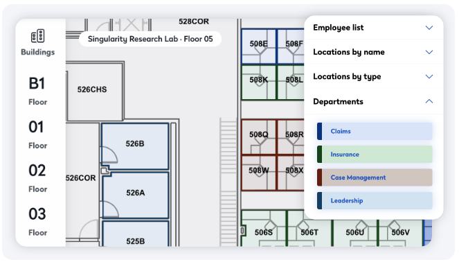 Access and update digital floor plans in real time by using BIM for space planning. Empower teams to navigate spaces and find resources easily.